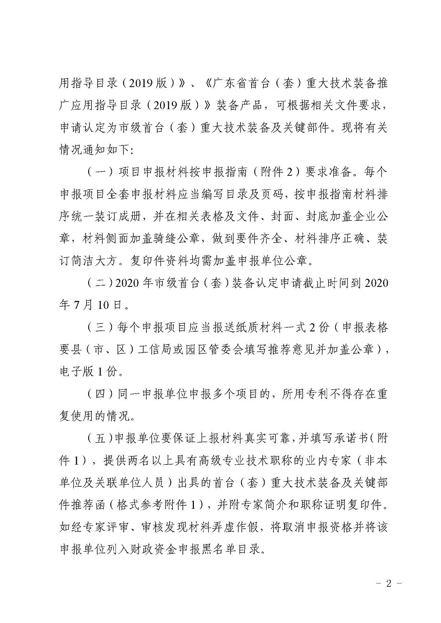 關(guān)于組織申報(bào)2020年度市級(jí)首臺(tái)(套)重大技術(shù)裝備及關(guān)鍵部件項(xiàng)目的通知