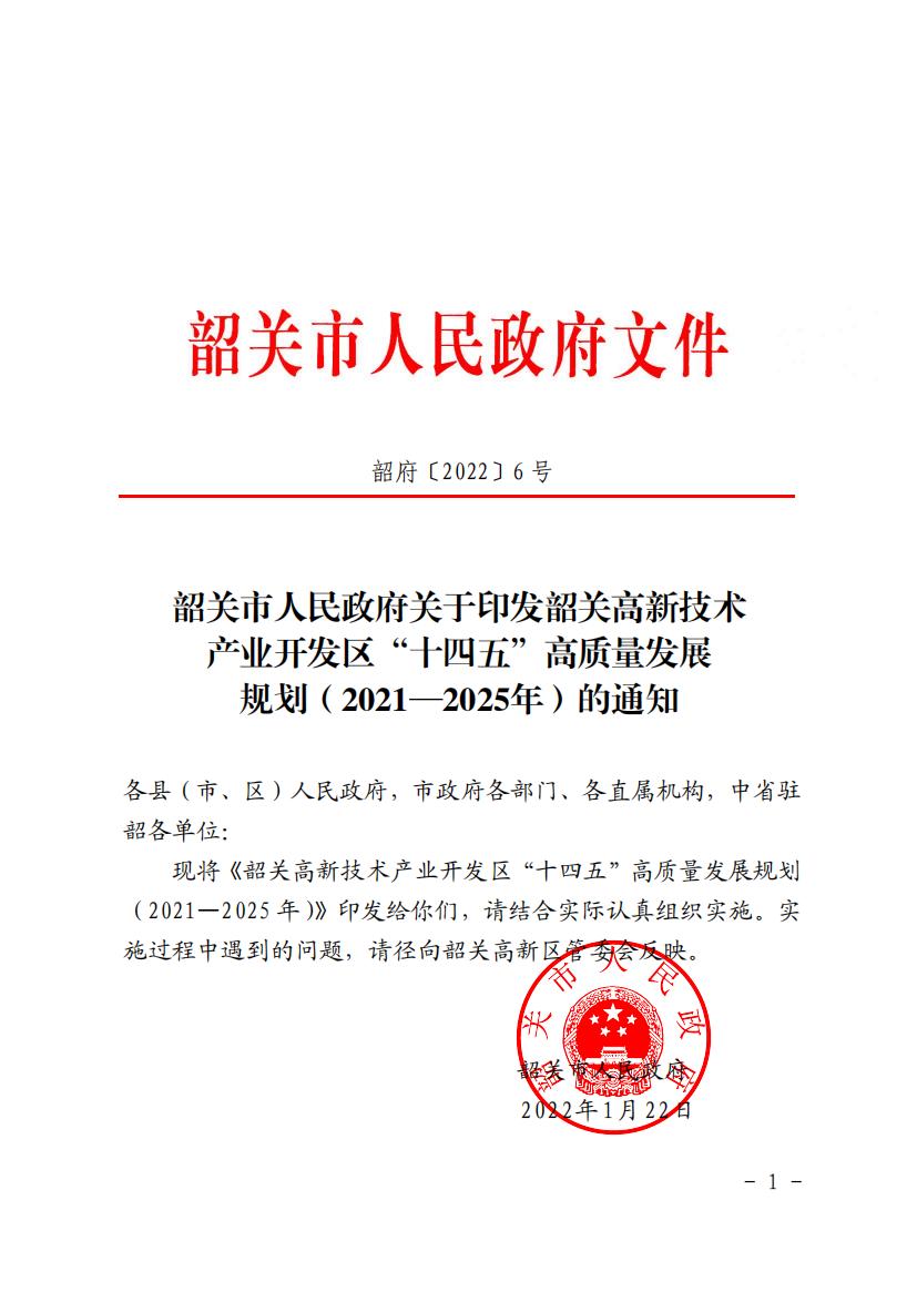 來源:韶關(guān)市人民政府關(guān)于印發(fā)韶關(guān)高新技術(shù)產(chǎn)業(yè)開發(fā)區(qū)“十四五”高質(zhì)量發(fā)展規(guī)劃(2021—2025年)的通知(韶府〔2022〕6號)