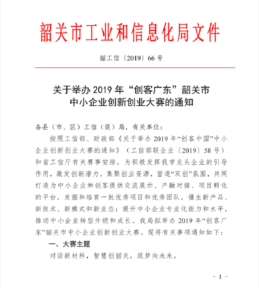 附件1:關(guān)于舉辦2019年“創(chuàng)客廣東”韶關(guān)中小企業(yè)創(chuàng)新創(chuàng)業(yè)大賽的通知.pdf