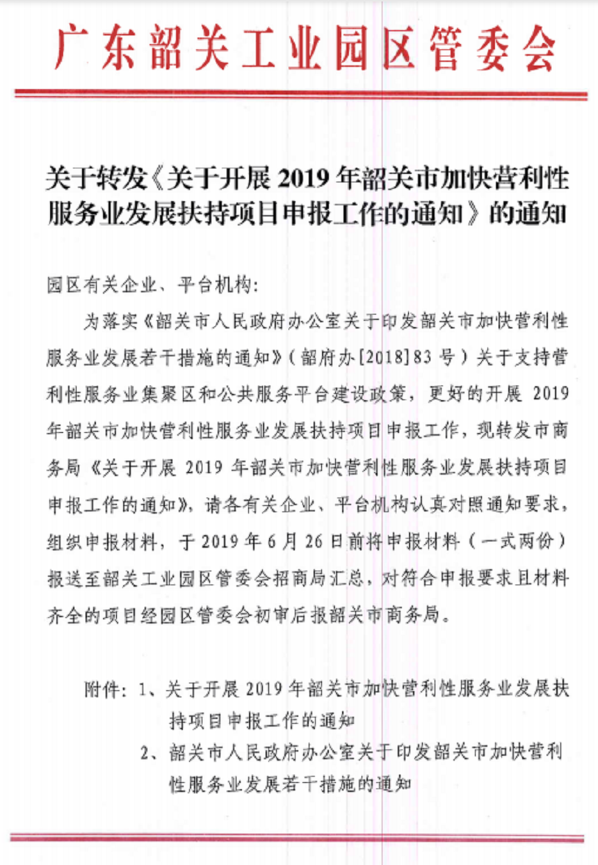 附件1:關(guān)于開展2019年韶關(guān)市加快營(yíng)利性服務(wù)業(yè)發(fā)展扶持項(xiàng)目申報(bào)工作的通知.doc