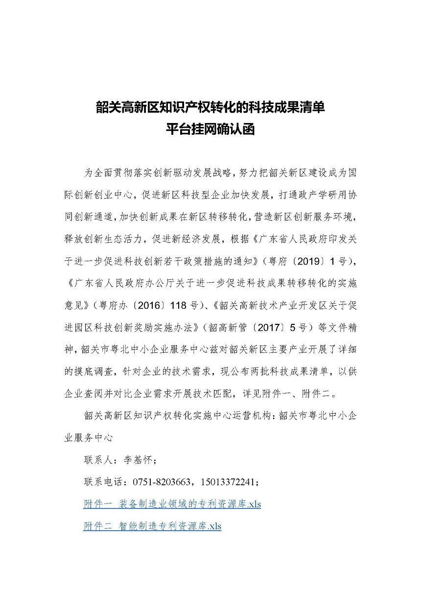 韶關(guān)高新區(qū)知識產(chǎn)權(quán)轉(zhuǎn)化的科技成果清單公示.docx
