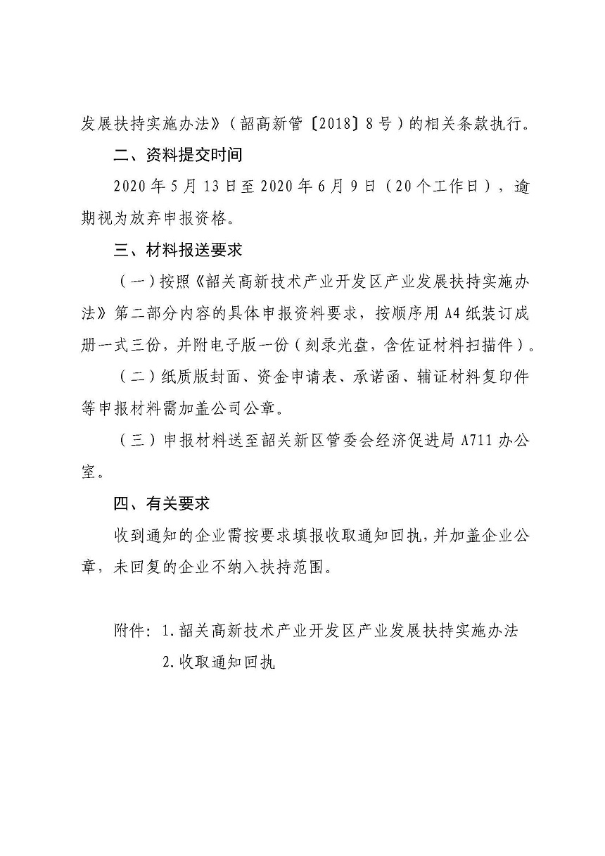 關于組織開展申報韶關新區(qū)產業(yè)發(fā)展扶持資金的通知(韶新管函〔2020〕100號).pdf